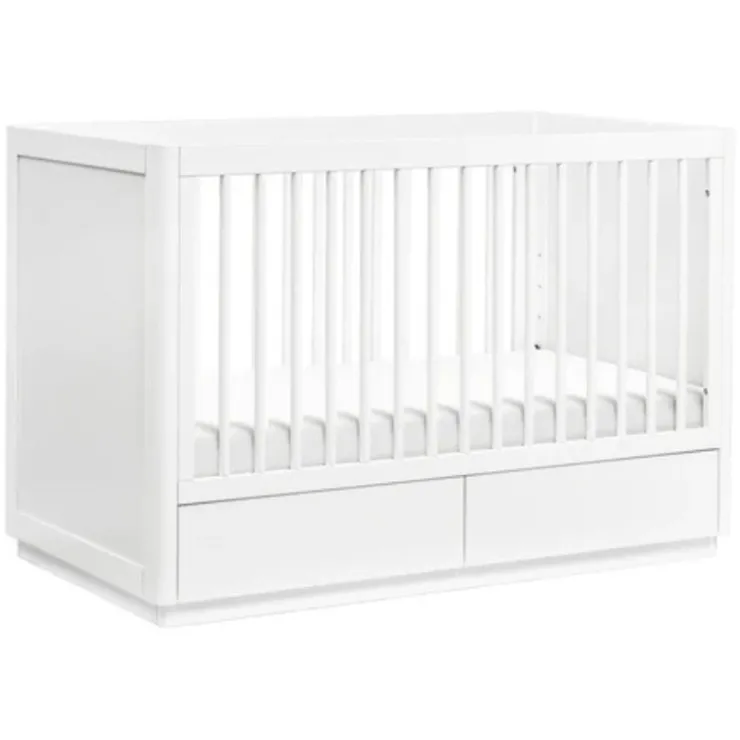 The Bento 3-in-1 Convertible Storage Crib celebrates modern minimalism with softly curved edges; hidden drawer pulls and raised platform base. It’s the thoughtful details that set this crib apart with two under-crib storage drawers and included toddler bed conversion kit. Made with sustainable New Zealand pine wood and screened for harmful chemical emissions to ensure it meets GREENGUARD GOLD Certification.