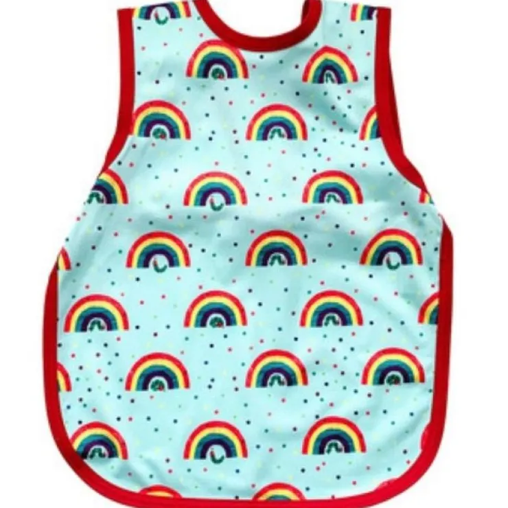 rBapronBaby’s unique soft-yet-waterproof fabric is an eco-friendly polyester that is fused into a buttery soft waterproof layer for dry, happy eaters. These baprons (think bib + apron) contour your child’s body and allow for a comfortable fit that grows with them throughout toddlerhood (size 6m-3T) and the preschool years (3-5yrs).