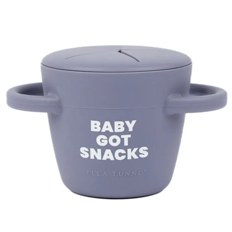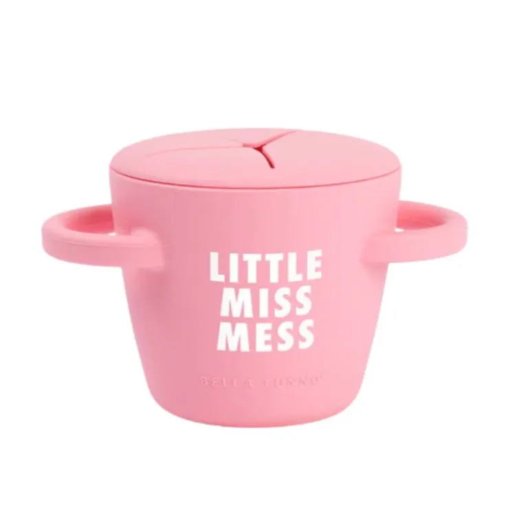 The horizontal handles allow the cup to securely fit in the car seat and stroller cup holders. The simple two-piece design makes pouring in snacks a breeze! The mess proof, tight lid stays in place. The soft silicone opening allows little hands to easily access food and prevents spills.rrrrJust pop the lid off when you are ready to clean it, each piece is dishwasher safe. Happy snacking!
