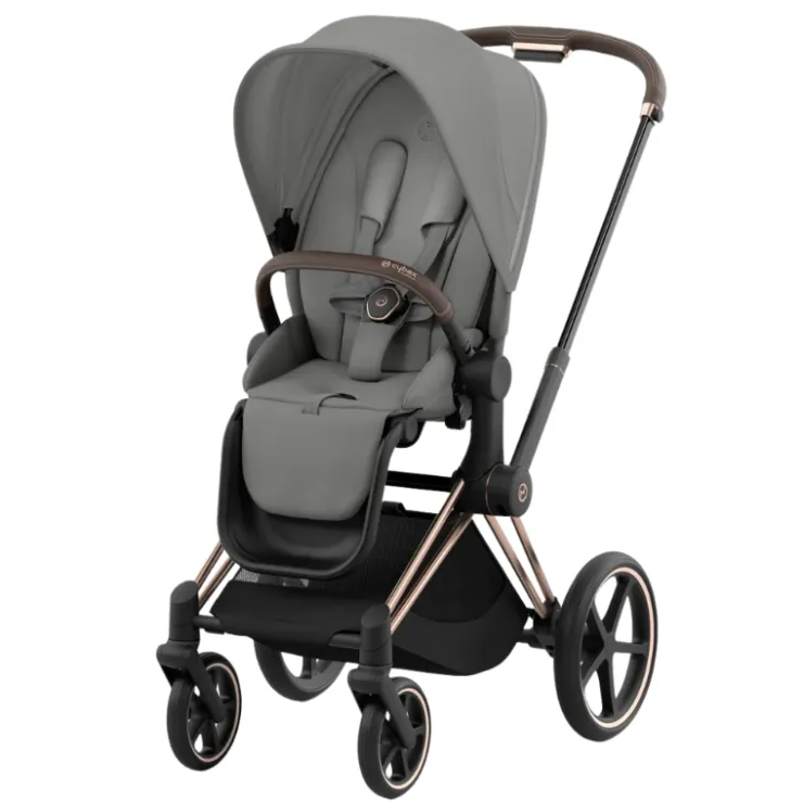 The sleek and stylish Cybex PRIAM 4 Stroller features faux leather details, premium fabrics, and comfort elements for effortless strolling adventures with your little one. It also boasts a compact freestanding fold and reversible seat for convenience.