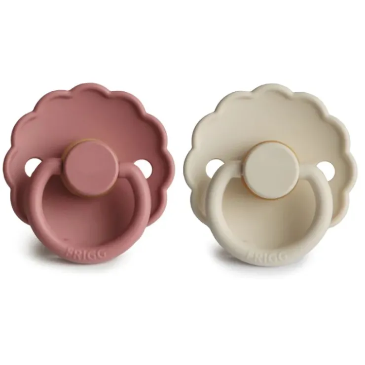 The FRIGG line of Daisy Natural Rubber Pacifiers have been thoughtfully designed for your baby’s comfort. The outward curve keeps the pacifier off their delicate skin, while features like air holes and a security handle ensure your baby stays safe. Available in a range of soft colors, FRIGG pacifiers make a beautiful addition to your collection of baby essentials.