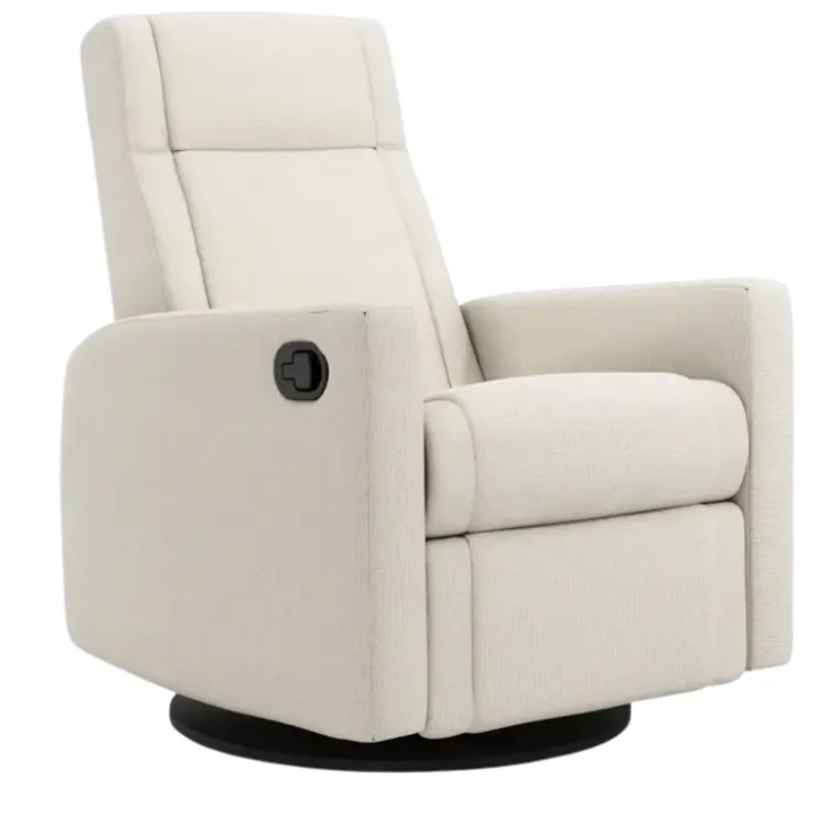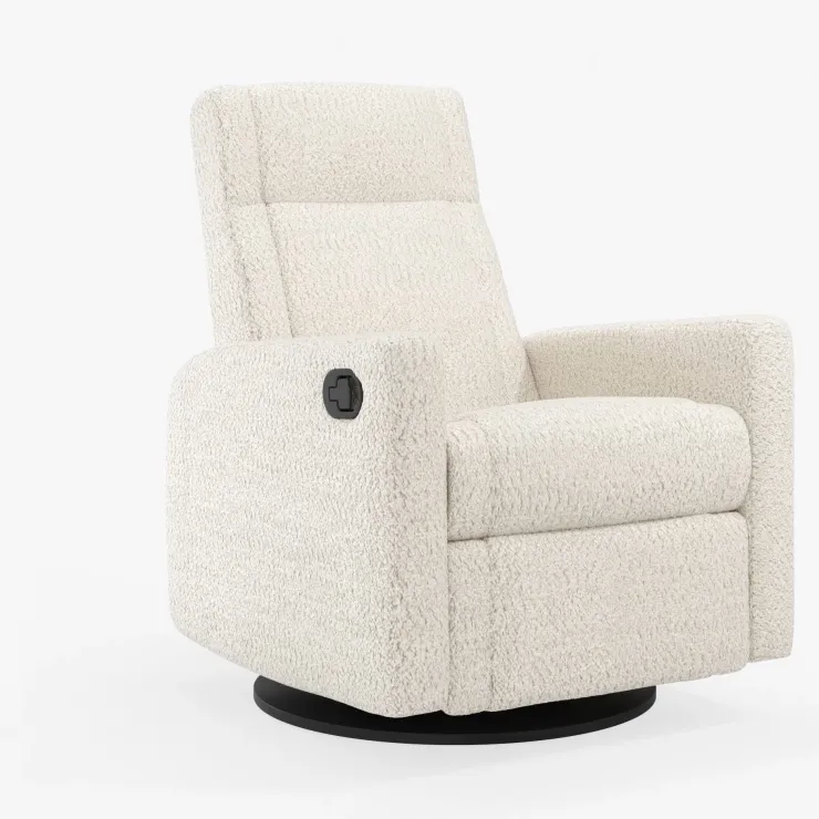 Comfort meets craftsmanship in the Jaymar Nelly Upholstered Swivel Recliner—a Canadian-made favourite among parents for its sleek design, supportive features, and premium materials. Designed to promote relaxation during feeding, rocking, or story time, the Nelly offers a long, gentle gliding motion and an easy manual recline with an integrated footrest.