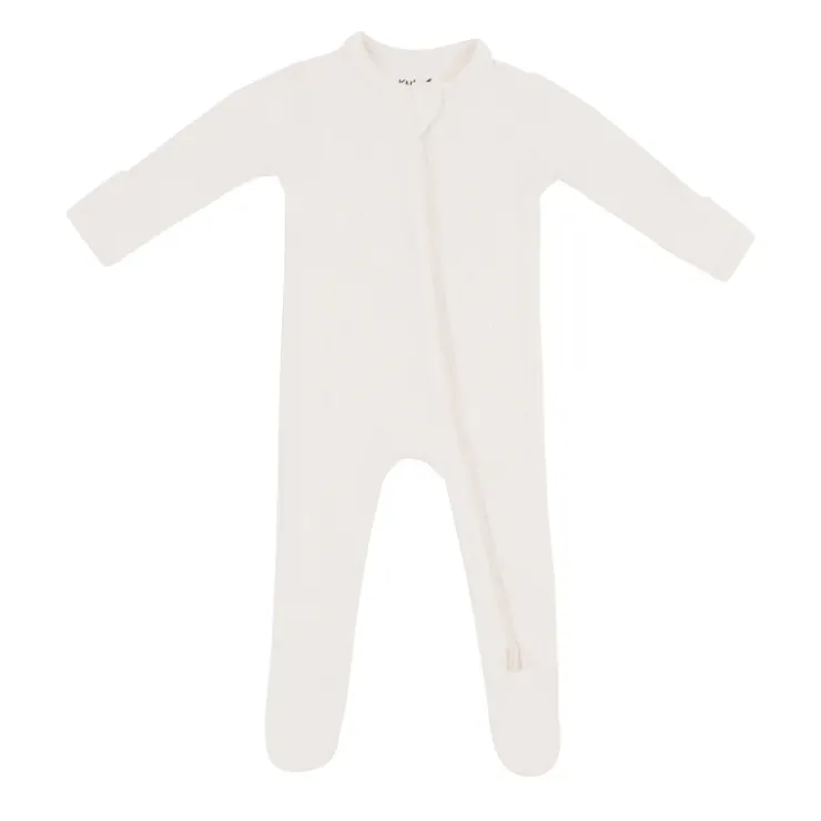 Ultra soft ribbed bamboo makes this zipper footie from Kyte Baby a wardrobe essential during the colder months. Built-in stretch allows the cozy fabric to move as your baby does, while the footed legs keep little toes warm on windy days. Take the fuss out of diaper changes with a double zipper that provides easy access in both directions.