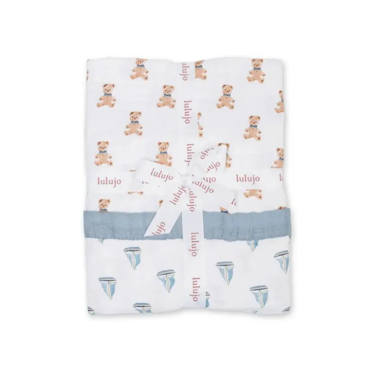 Warm and cozy for play, cuddles, and bedtime. These beautifully soft quilted blanket from Lulujo are perfect for your little one to use throughout their childhood. Made with three layers of premium cotton muslin with colour coordinating trim and reversible prints.