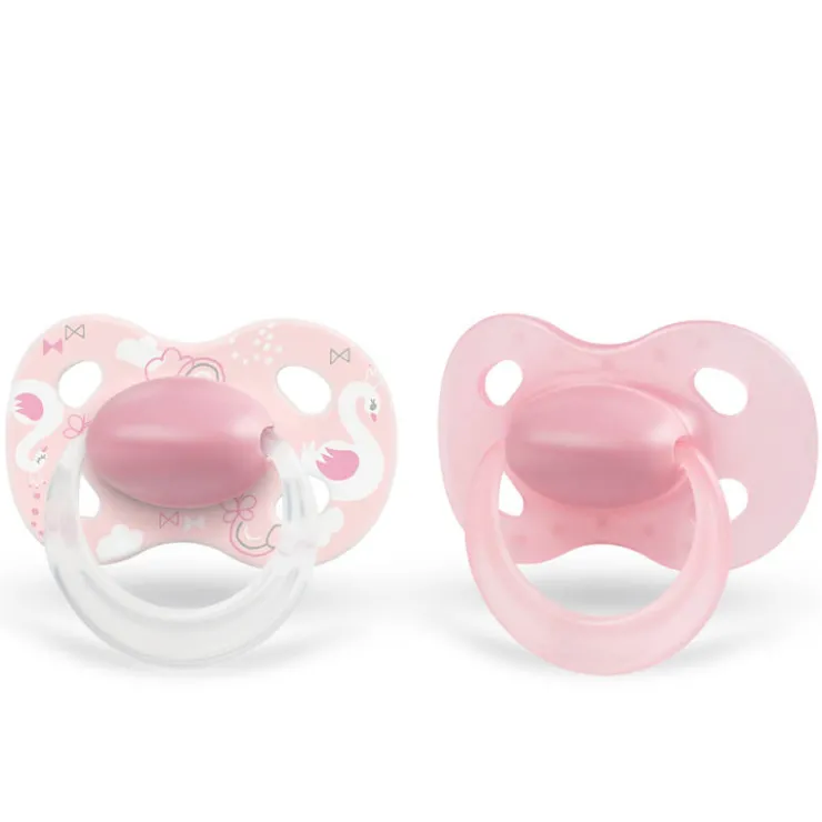 - The flat symmetric shape and thin neck of the silicone teat are designed to support the natural movement of the mouth muscles [High acceptance: 9 out of 10 babies love the pacifier!]