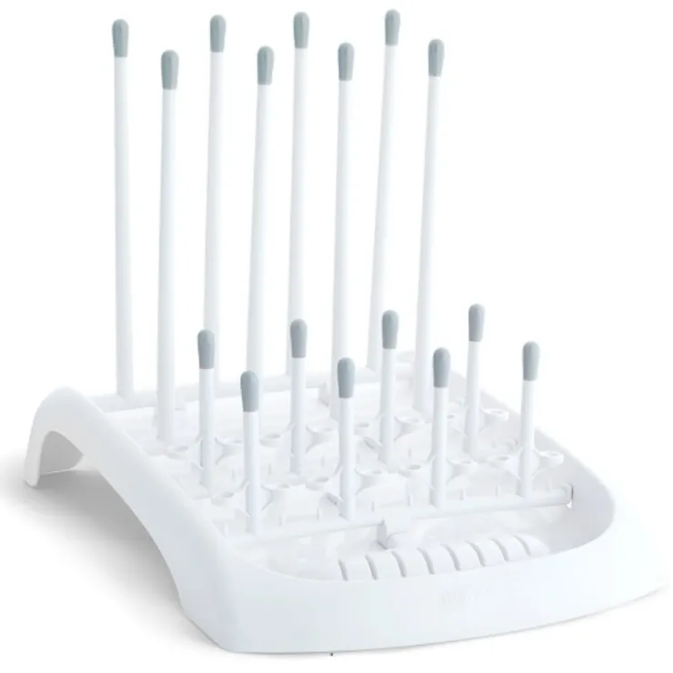 Let’s face it: nothing works as well as air drying those freshly washed baby bottles and cups. The Fold Drying Rack helps keeps your kitchen counters clutter-free and your feeding accessories dry. Ideal for use with bottles, nipples, cups, straws, valves, pump parts and more. Two peg heights accommodate all bottle and accessory sizes, and a slotted row holds 8 standard and wide-mouth sealing discs upright. The pegs fold flat for easy storage and have rounded tips to prevent scratching, while the built-in reservoir collects excess water to keep countertops dry. Easy-to-grasp handles allow for easy lifting, and there’s absolutely no assembly required. This drying rack is a bottle washing must.