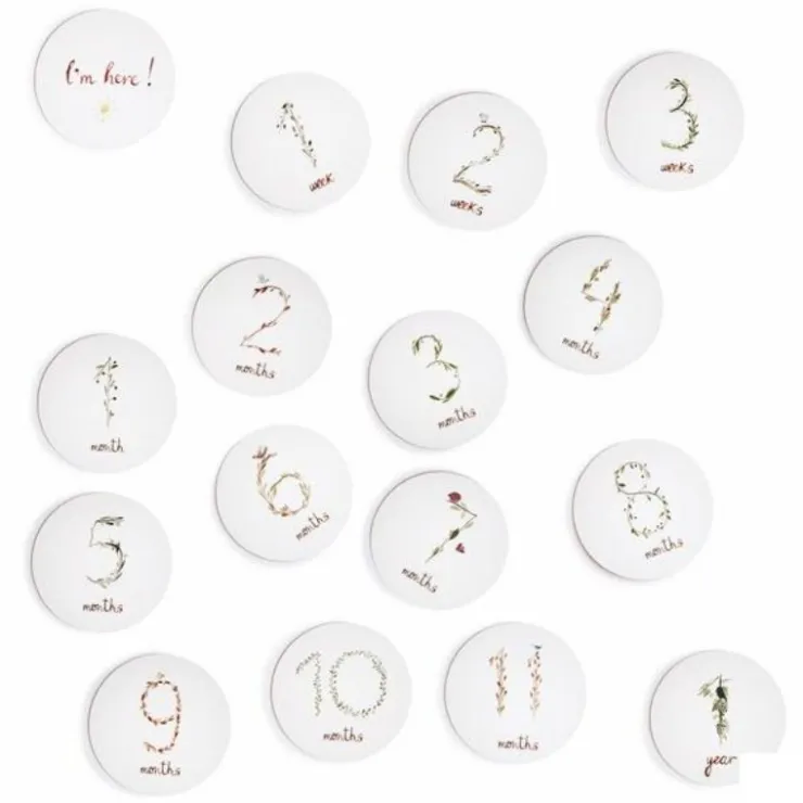Document the growth of your new baby with this set of 16 beautifully illustrated milestone cards from Mushie.