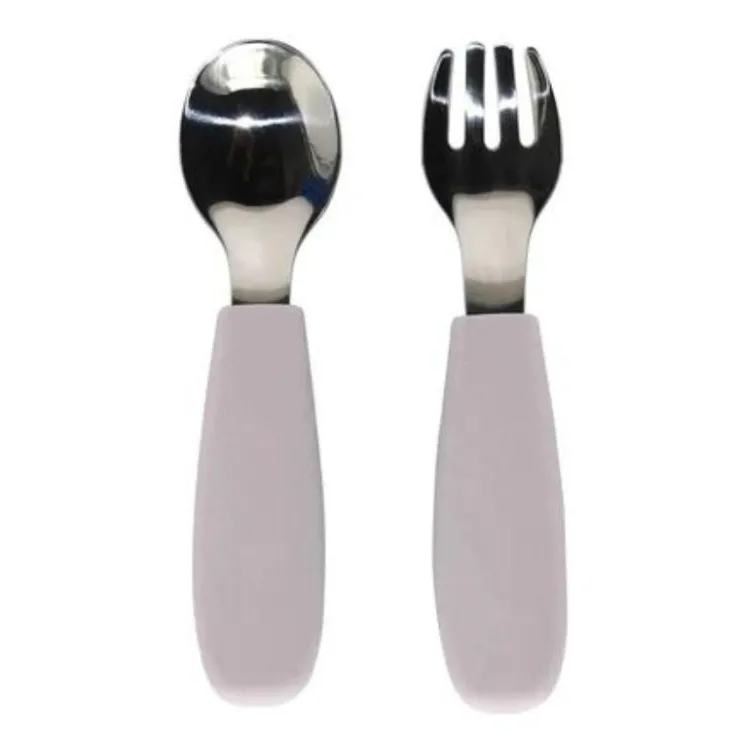Self-feeding is simple and safe for little ones with noüka’s Toddler Cutlery Set. This set includes a fork and spoon with smooth edge design for safety. The soft silicone handle allows for a comfortable grip as they practice self-feeding. Made from food grade silicone and stainless steel that is dishwasher safe, our dinnerware set is easy to clean, durable, and long-lasting. The Toddler Cutlery Set is available in an array of calming, modern colors for your little one.
