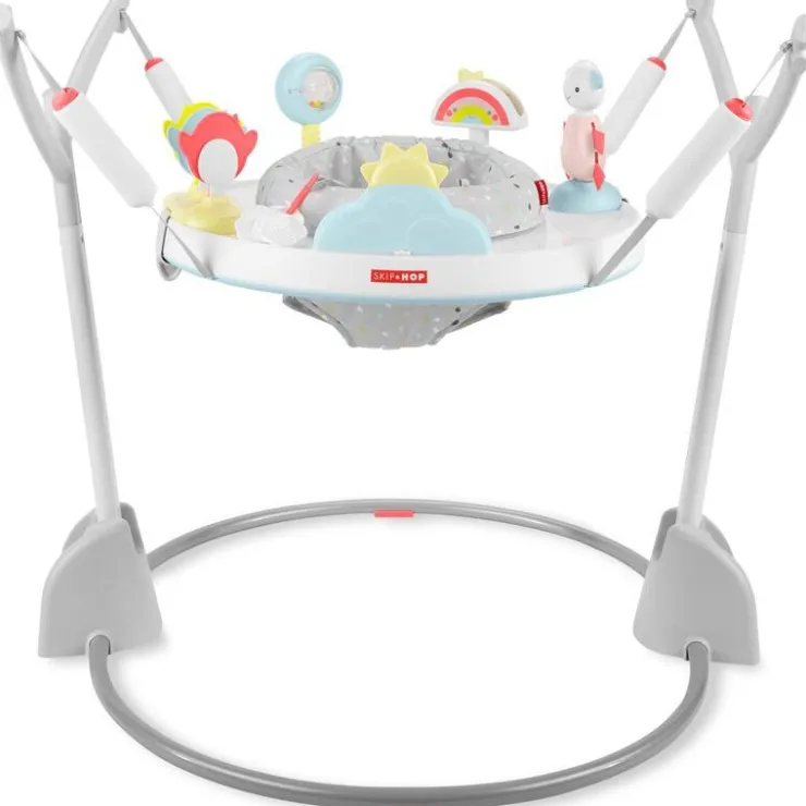 An action-packed playtime must-have for baby, the Skip Hop Silver Lining Cloud Play & Fold Jumper is filled with 20-plus developmental activities plus a 360-degree rotating seat so baby can sit, swivel and bounce for maximum exploration.