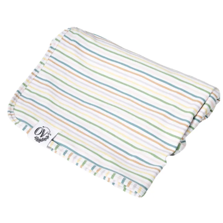 The OVer Company’s Butter Blanket is a single-sided, soft as butter, lightweight swaddle blanket. The Butter Blanket fabric is made of the softest and stretchiest luxury fabric that everyone will absolutely love! This beautifully bound blanket is a great option for use all year round. Measuring 40” x 40”, it is the perfect size for swaddling and an everyday blanket for the parent on the go. The Butter Blanket is an ideal option for swaddling a fresh babe in newborn photos. The loose ends tie into a pretty knot to hold the swaddle tightly in place!