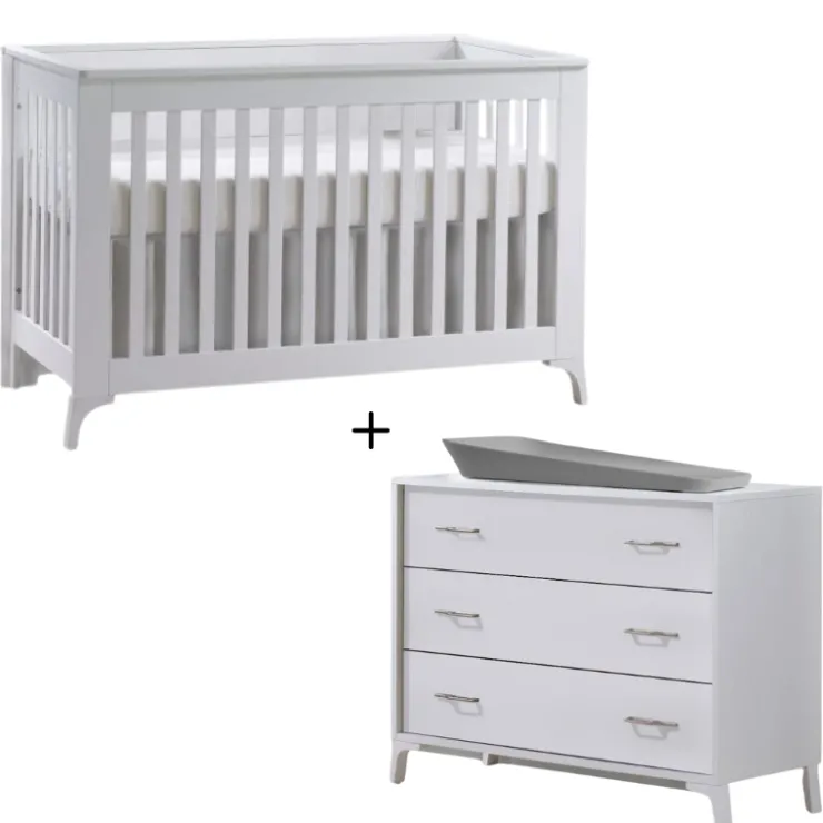 Elevate your nursery with the Metro Convertible Crib and 3 Drawer Dresser Combo from Tulip by Natart, a blend of sophistication, functionality, and safety. Crafted with meticulous attention to detail, this combo seamlessly integrates style and utility to meet the needs of modern families.