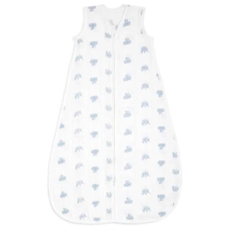 Impossible for little legs to kick off, aden + anais cotton muslin baby sleeping bag keeps baby feeling comfy and secure when transitioning out of a swaddle and beyond. Designed to be worn over pajamas, these light baby sleeping bag eliminates the need for loose blankets in the crib for a safer sleep. Made from a single layer of breathable cotton muslin, the wearable blanket allows for airflow, helping to reduce the risk of baby overheating for a peaceful night sleep for baby and you. Its convenient zipper opens from the bottom, making nighttime changes easy.