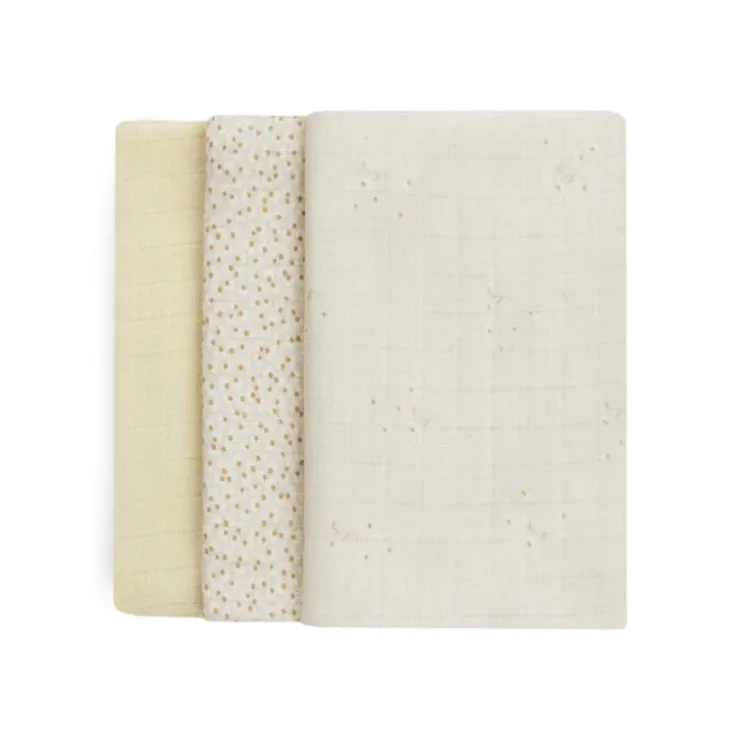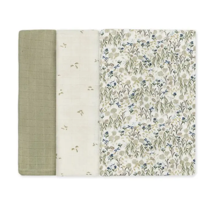 - Set includes 3 muslin squares
