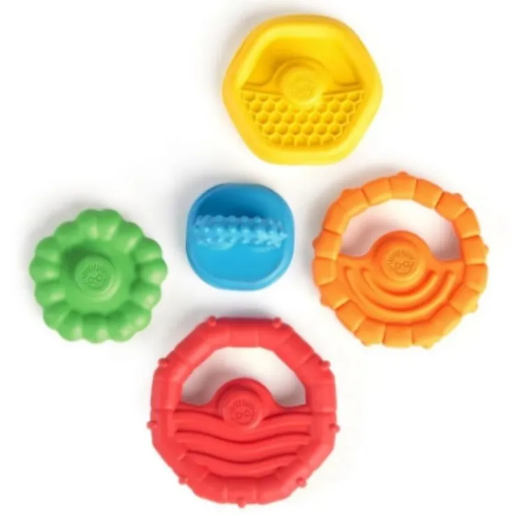 - Textured stacking rings are teething-safer