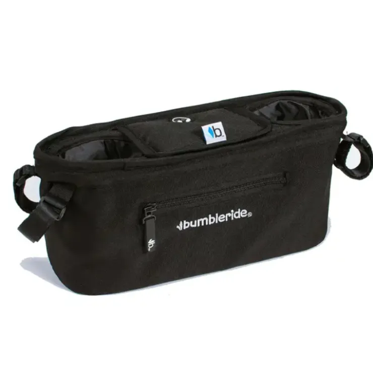 The Bumbleride Parent Pack is a parent console that attaches directly to the handle of your Bumbleride. Parent Pack attaches with 4 Velcro straps for any handlebar angle. Constructed using durable, 100% rPET fabric that is PFAS-Free (free from forever chemicals). Parent Pack is easily removed, and machine washed. It also folds down with your Bumbleride stroller. It features two adult-sized cup holders and a secure magnetic pouch for your keys, phone and other valuables.