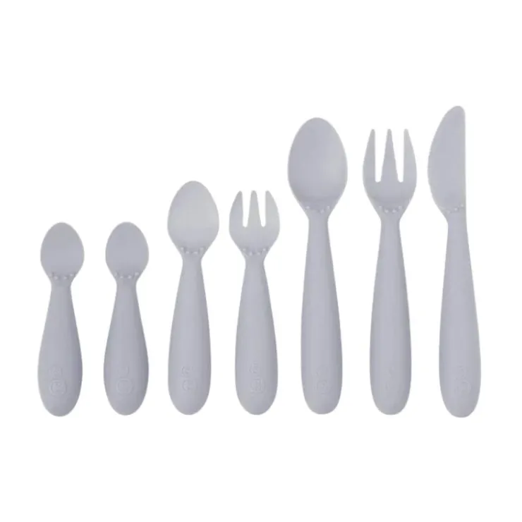 - Set includes Tiny Spoons (2-pack), Mini Utensils (spoon + fork) and Happy Utensils (spoon + fork + knife)
