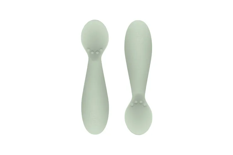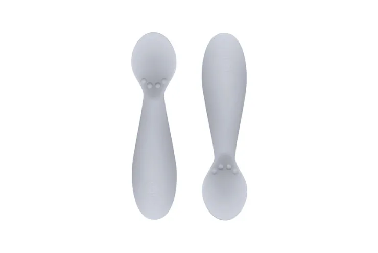 - Non-slip grip and short, fat, round handle help baby grasp utensil