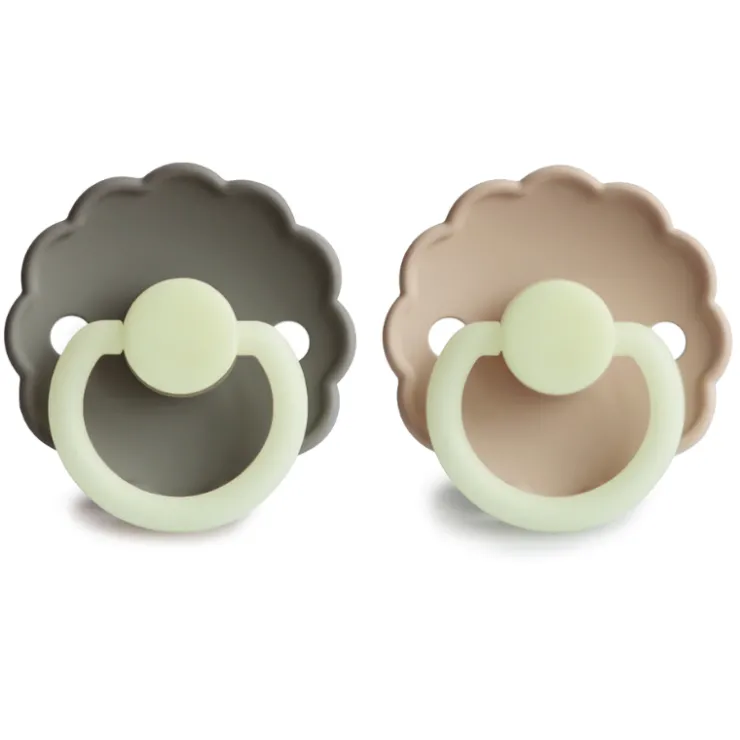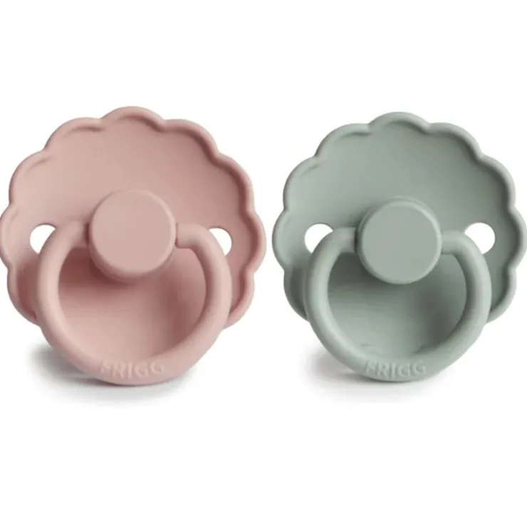 The FRIGG line of Daisy Silicone Pacifiers with improved SilkySoft nipple and an innovative Click-lock System has been thoughtfully designed for your baby’s comfort. The outward curve keeps the pacifier off their delicate skin, while features like air holes and a security handle ensure your baby stays safe. Available in a range of soft colors, FRIGG pacifiers make a beautiful addition to your collection of baby essentials.