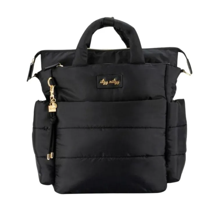 Like a cloud seamlessly changes shapes, this multi-function bag takes on many (effortless!) forms while offering plenty of pockets. The lightweight and airy, black puffer style design easily converts from a backpack diaper bag to a crossbody shoulder bag or handy tote to express your every whim.