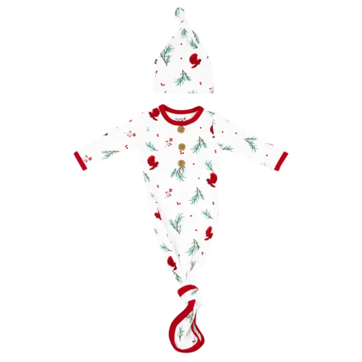 - Henley gown and matching knotted cap in bamboo fabric