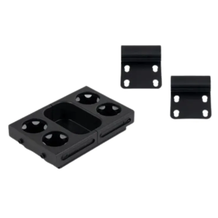 - Four cup holders with grip tabs keep beverages secure