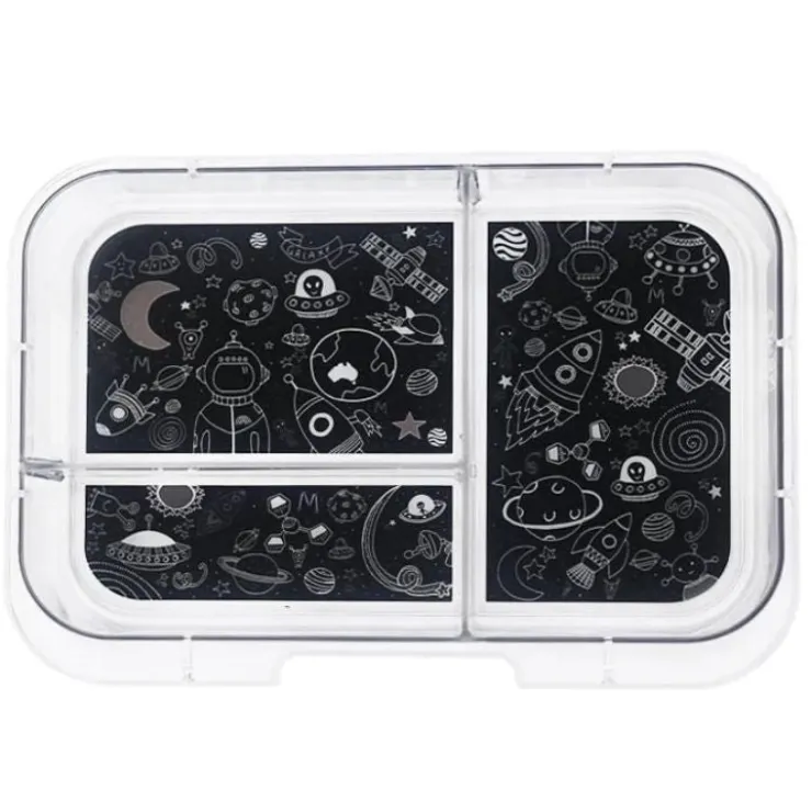 - The compartments of each tray in the Mini4, Midi5, Maxi6, Mega3 and Mega4 collections all correspond exactly with the patterned silicone lid and function seamlessly within the one outerbox!r