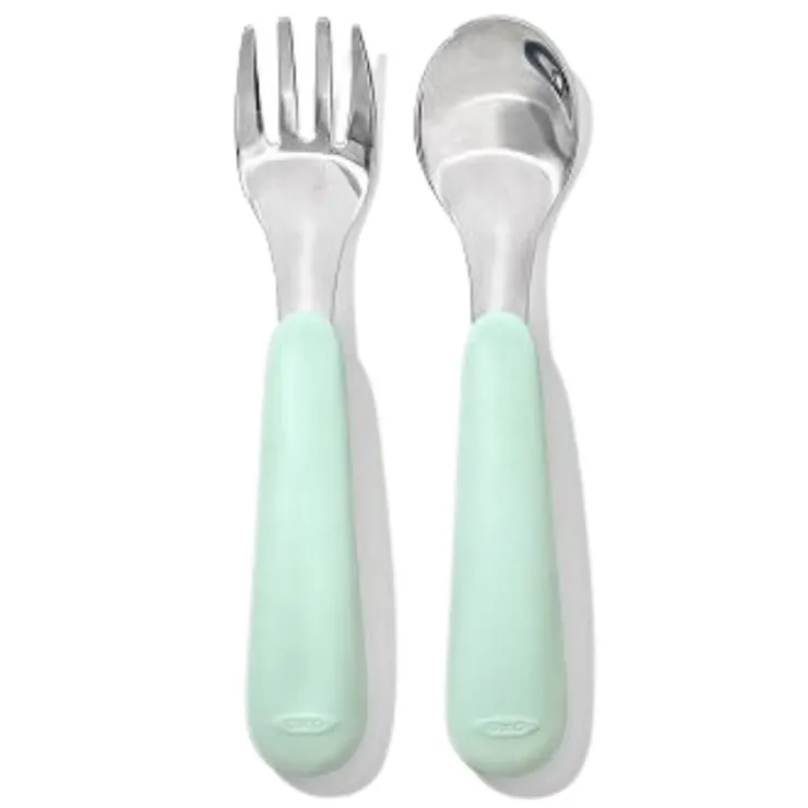 - This durable stainless steel Fork and Spoon Set eases the transition to “grown-up” flatware.