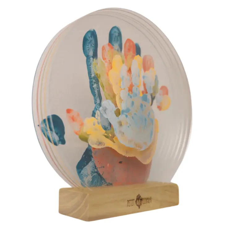 - Includes: 5 transparent panels, 1 pretty wooden base for support, 5 paint tubes, 1 roller for application, and instructions to easily create the prints.