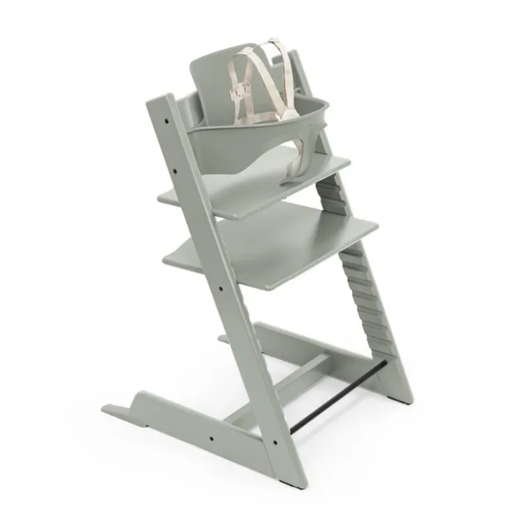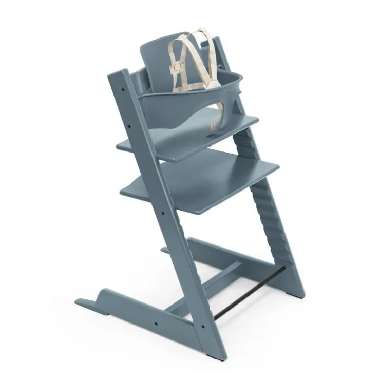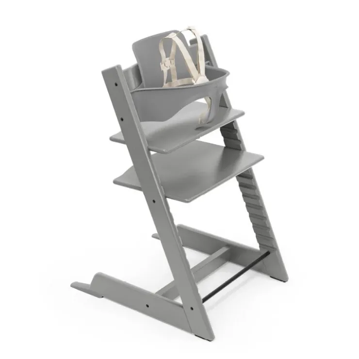 - Includes Tripp Trapp chair + baby set with harnessNew and improved, intuitive harness buckle with 2 click-in points and a quick, one-click release button