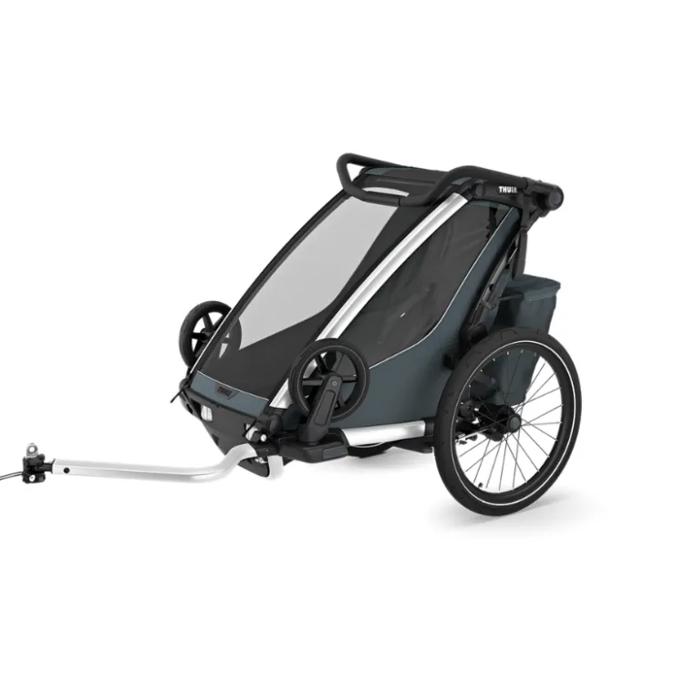 - Redesigned FlipWing-system allows for even easier switching between biking and strolling and back, now with the possibility to flip the wheels up and down while the trailer is attached to the bike